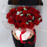 Шляпная коробка с красными розами и эвкалиптом